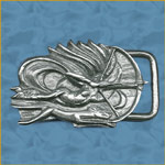 Out of the ashes of defeat, a shining silver bird arising. Design mastered in wood by legendary pagan woodcarver Bel Bucca.
