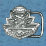 This is a collection of big heavy solid pewter belt buckles which are cast in one piece. The basic designs were firstly carved in wood, and a special mould made to avoid damaging the delicate originals. The castings from this mould were then made into metal originals with the bars and prongs welded on, and then moulded again.