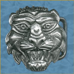 The ferocious beast's head is depicted in fierce full frontal splendour. Design mastered in wood by legendary pagan woodcarver Bel Bucca.